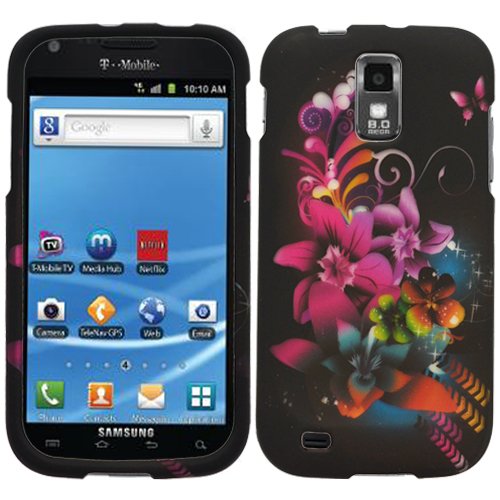 Purple Flower Butterfly Rubberized Coating Hard Case Cover for Samsung Galaxy S2 SII T989/T-Mobile + Screen Protector Film + Black Jaw Stand Customer Reviews